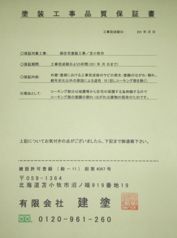 官工事にも採用されている方式にて適正な施工が行われた事を証明致します。